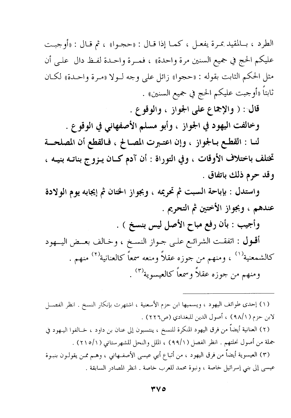 وخالفت اليهود في الجواز, وأبو مسلم الأصفهاني في الوقوع.