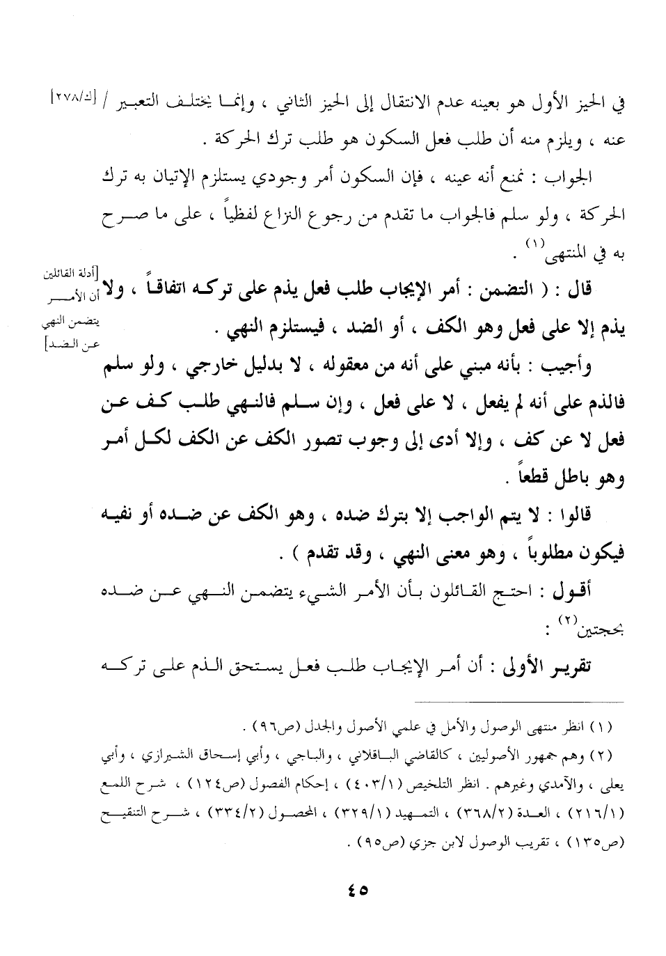 في الحيز الأول هو بعينه عدم الانتقال إلى الحيز الثاني, وإنما يختلف التعبير عنه, ويلزم منه أن طلب فعل السكون هو طلب ترك الحركة.