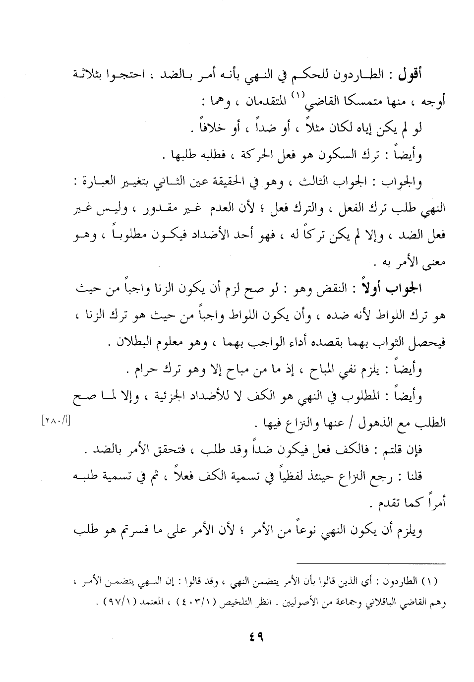 الجواب أولًا: النقض وهو: لو صح لزم أن يكون الزنا واجبًا من حيث هو ترك اللواط لأنه ضده, وأن يكون اللواط واجبًا من حيث هو ترك الزنا, فيحصل الثواب بهما بقصده أداء الواجب بهما, وهو معلوم البطلان.