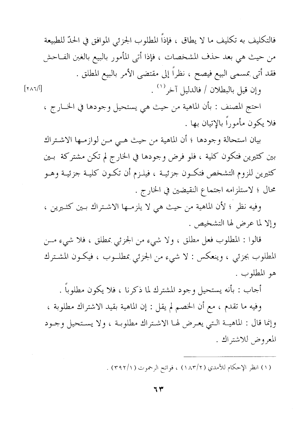 فالتكليف به تكليف ما لا يطاق, فإذًا المطلوب الجزئي الموافق في الحدّ للطبيعة من حيث هي بعد حذف المشخصات, فإذا أتى المأمور بالبيع بالغبن الفاحش فقد أتى بمسمى البيع فيصح, نظرًا إلى مقتضى الأمر بالبيع المطلق.