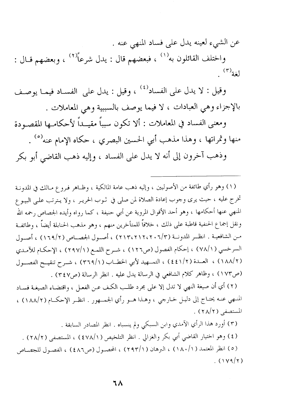 ومعنى الفساد في المعاملات: ألا تكون سببًا مقيدًا لأحكامها المقصودة منها وثمراتها, وهذا مذهب أبي الحسين البصري, حكاه الإمام عنه.