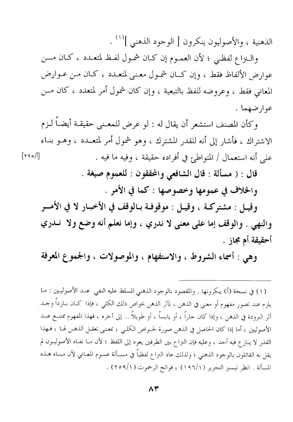 الذهنية, والأصوليون ينكرون [الوجود الذهني].
