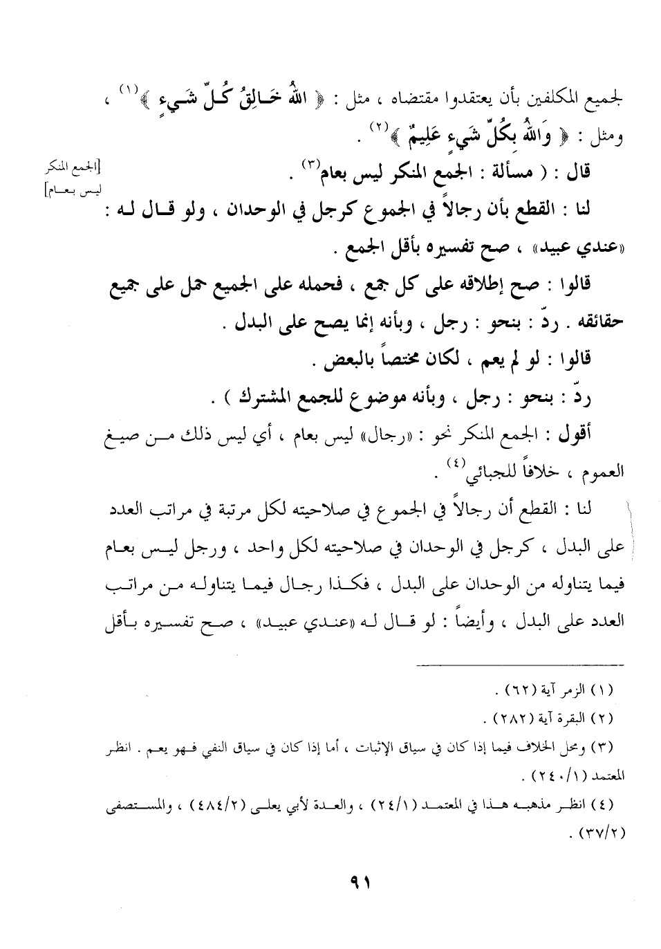 قال: (مسألة: الجمع المنكر ليس بعام.