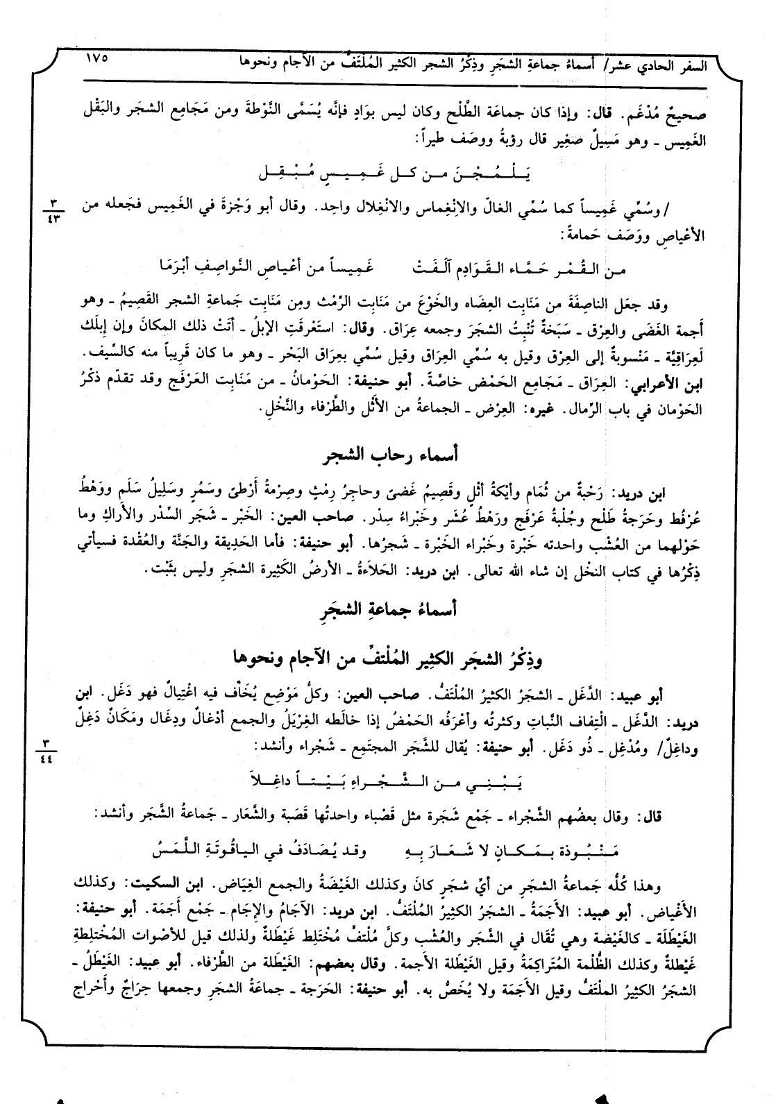 (بَاب أَسمَاء جمَاعَة الشّجر وَذكر الشّجر الْكثير الملتف من الآجام وَنَحْوهَا)