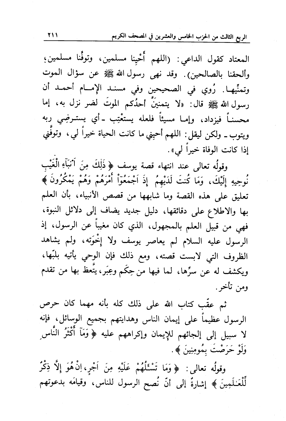 المعتاد كقول الداعي: (اللهم أحينا مسلمين، وتوفنا مسلمين، وألحقنا بالصالحين). وقد نهى رسول الله صلى الله عليه وسلم عن سؤال الموت وتمنيها. روي في الصحيحين وفي مسند الإمام أحمد أن رسول الله صلى الله عليه وسلم قال: (لا يتمنين أحدكم الموت لضر نزل به، إما محسنا فيزداد، وإما مسيئا فلعله يستعتب -أي يسترضي ربه ويتوب- ولكن ليقل: اللهم أحيني ما كانت الحياة خيرا لي، وتوفَّني إذا كانت الوفاة خيرا لي).
