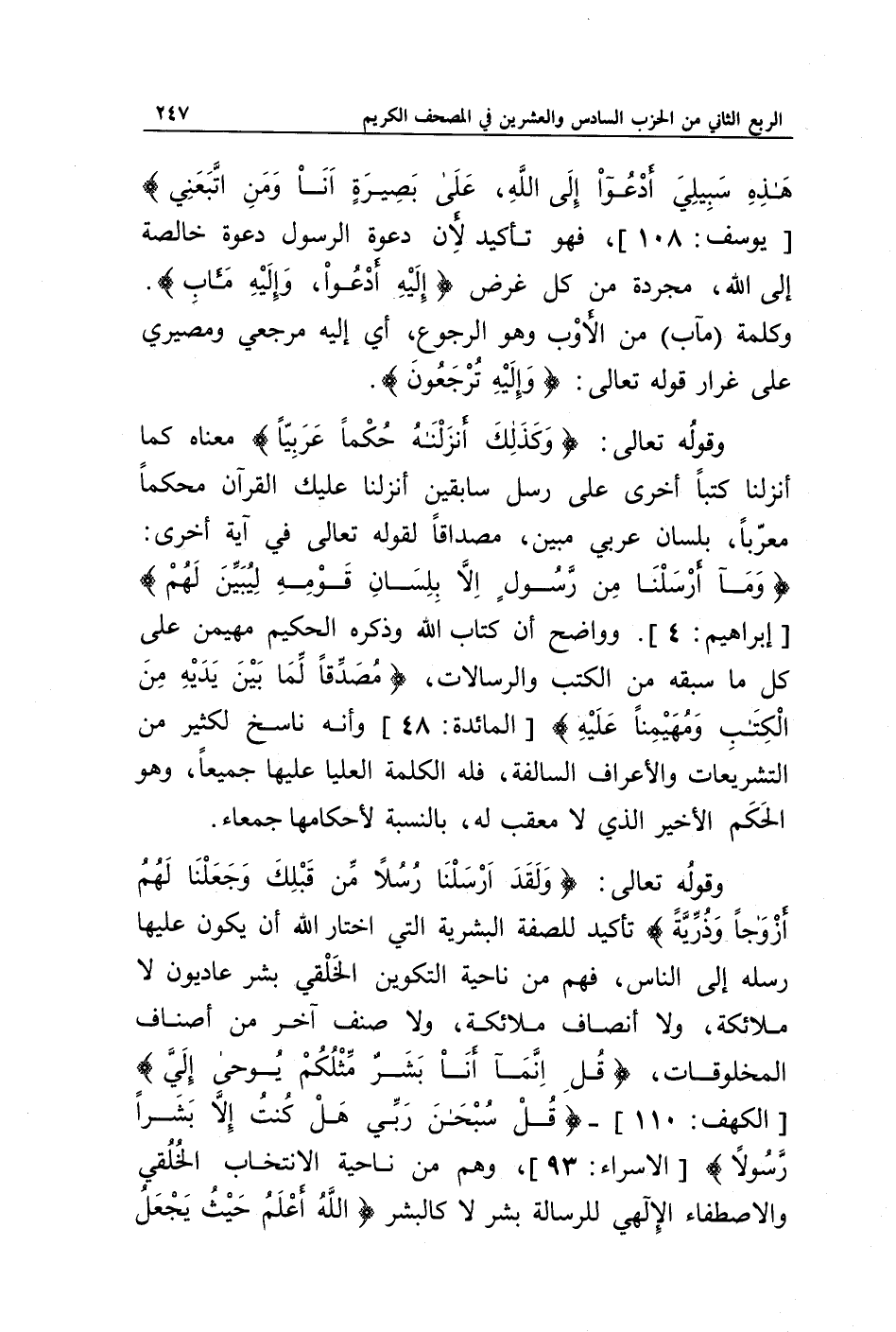 هَذِهِ سَبِيلِي أَدْعُو إِلَى اللَّهِ عَلَى بَصِيرَةٍ أَنَا وَمَنِ اتَّبَعَنِي} [يوسف: 108]، فهو تأكيد لأن دعوة الرسول دعوة خالصة إلى الله، مجردة من كل غرض {إِلَيْهِ أَدْعُو وَإِلَيْهِ مَآبِ}. وكلمة {مَآبِ} من الأوب وهو الرجوع، أي إليه مرجعي ومصيري على غرار قوله تعالى: {وَإِلَيْهِ تُرْجَعُونَ}.