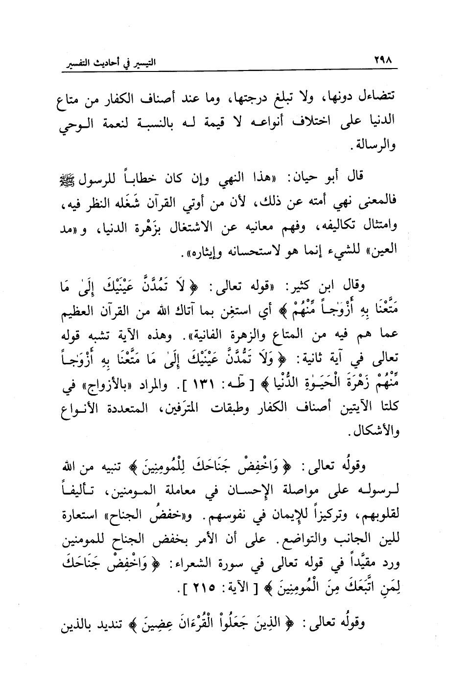 وقال ابن كثير: " قوله تعالى: {لَا تَمُدَّنَّ عَيْنَيْكَ إِلَى مَا مَتَّعْنَا بِهِ أَزْوَاجًا مِنْهُمْ} أي استغن بما آتاك الله من القرآن العظيم عما هم فيه من المتاع والزهرة الفانية ". وهذه الآية تشبه قوله تعالى في آية ثانية: {وَلَا تَمُدَّنَّ عَيْنَيْكَ إِلَى مَا مَتَّعْنَا بِهِ أَزْوَاجًا مِنْهُمْ زَهْرَةَ الْحَيَاةِ الدُّنْيَا} [طه: 131]. والمراد " بالأزواج " في كلتا الآيتين أصناف الكفار وطبقات المترفين، المتعددة الأنواع والأشكال.