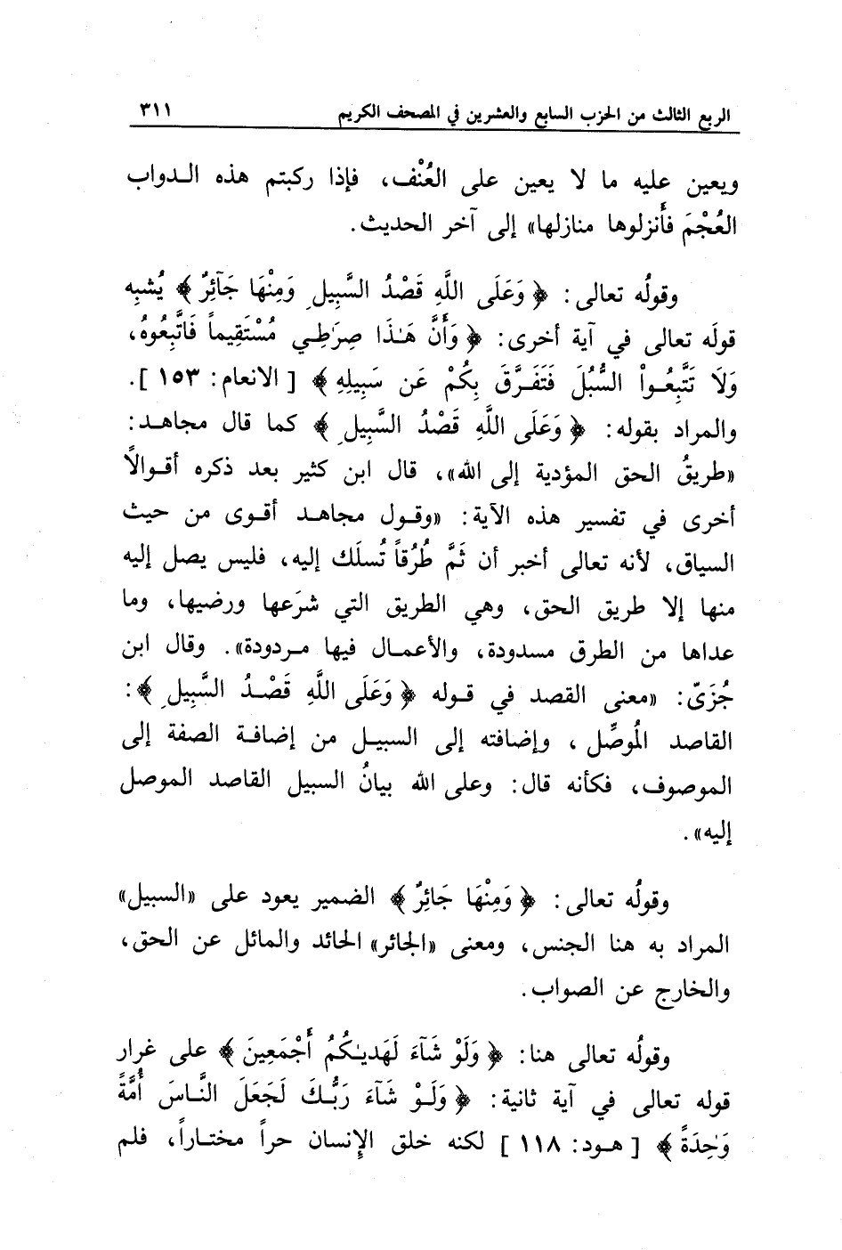 وقوله تعالى: {وَمِنْهَا جَائِرٌ} الضمير يعود على " السبيل " المراد به هنا الجنس، ومعنى " الجائر " الحائد والمائل عن الحق، والخارج عن الصواب.