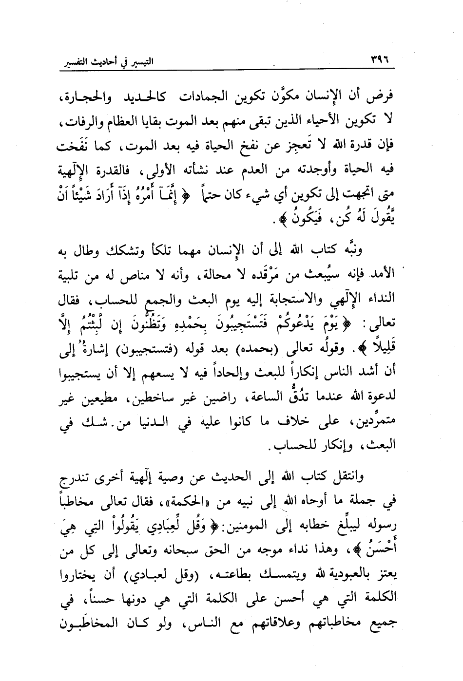 ونبه كتاب الله إلى أن الإنسان مهما تلكأ وتشكك وطال به الأمد فإنه سيبعث من مرقده لا محالة، وأنه لا مناص له من تلبية النداء الإلهي والاستجابة إليه يوم البعث والجمع للحساب، فقال تعالى: {يَوْمَ يَدْعُوكُمْ فَتَسْتَجِيبُونَ بِحَمْدِهِ وَتَظُنُّونَ إِنْ لَبِثْتُمْ إِلَّا قَلِيلًا}. وقوله تعالى {بِحَمْدِهِ} بعد قوله {فَتَسْتَجِيبُونَ} إشارة إلى أن أشد الناس إنكارا للبعث وإلحادا فيه لا يسعهم إلا أن يستجيبوا لدعوة الله عندما تدق الساعة، راضين غير ساخطين، مطيعين غير متمردين، على خلاف ما كانوا عليه في الدنيا من شك في البعث، وإنكار الحساب.