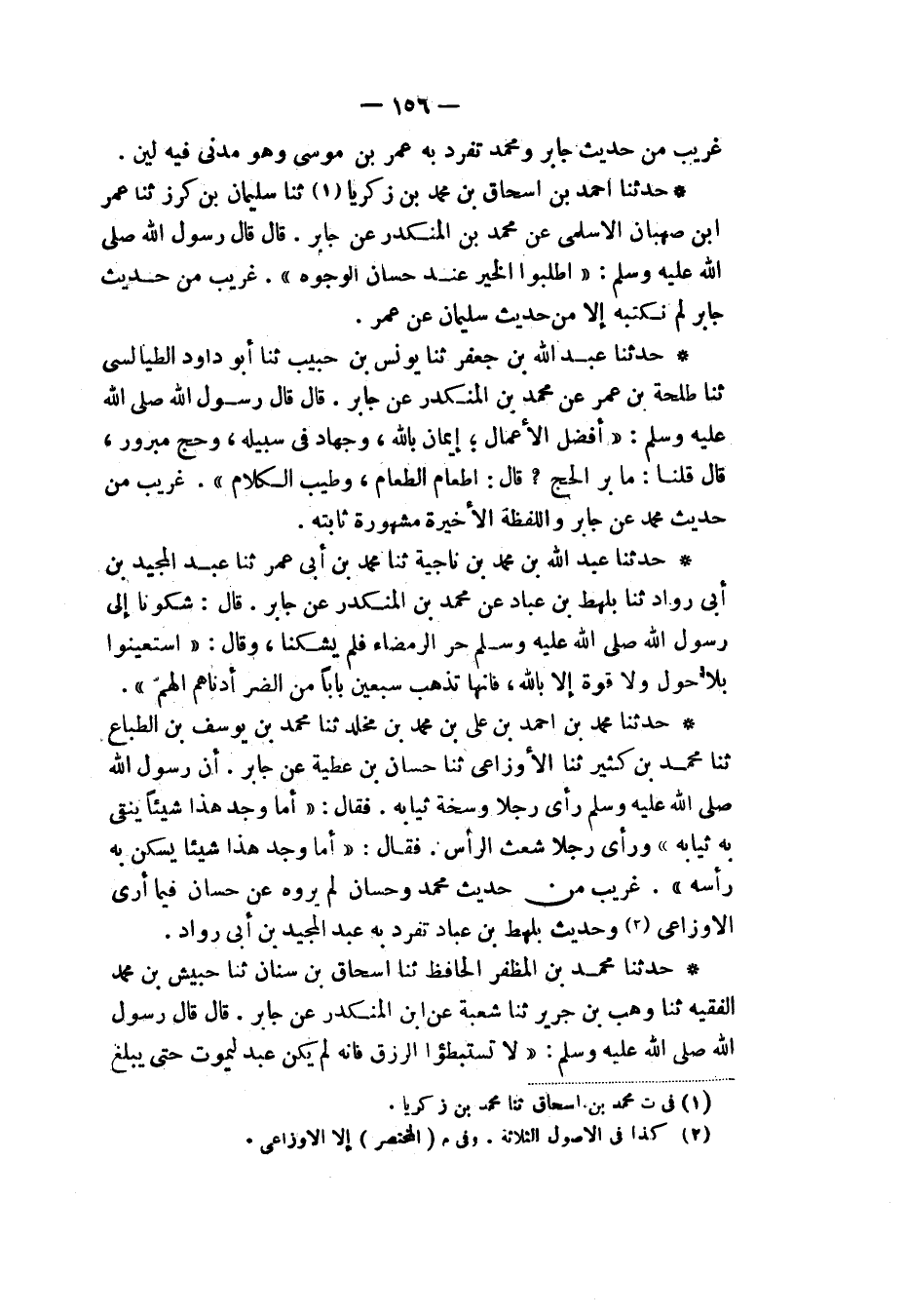 حَدَّثَنَا مُحَمَّدُ بْنُ الْمُظَفَّرِ الْحَافِظُ، ثَنَا إِسْحَاقُ بْنُ سِنَانٍ، ثَنَا حُبَيْشُ بْنُ مُحَمَّدٍ الْفَقِيهُ، ثَنَا وَهْبُ بْنُ جَرِيرٍ، ثَنَا شُعْبَةُ، عَنِ ابْنِ الْمُنْكَدِرِ، عَنْ جَابِرٍ، قَالَ: قَالَ رَسُولُ اللهِ صَلَّى اللهُ عَلَيْهِ وَسَلَّمَ: «§لَا تَسْتَبْطِئُوا الرِّزْقَ فَإِنَّهُ لَمْ يَكُنْ عَبْدٌ لِيَمُوتَ حَتَّى يَبْلُغَ -[157]- آخِرَ رِزْقٍ لَهُ، فَاتَّقُوا اللهَ وَأَجْمِلُوا فِي الطَّلَبِ؛ أَخْذِ الْحَلَالِ وَتَرْكِ الْحَرَامِ» غَرِيبٌ مِنْ حَدِيثِ مُحَمَّدٍ وَشُعْبَةَ، تَفَرَّدَ بِهِ وَهْبُ بْنُ جَرِيرٍ