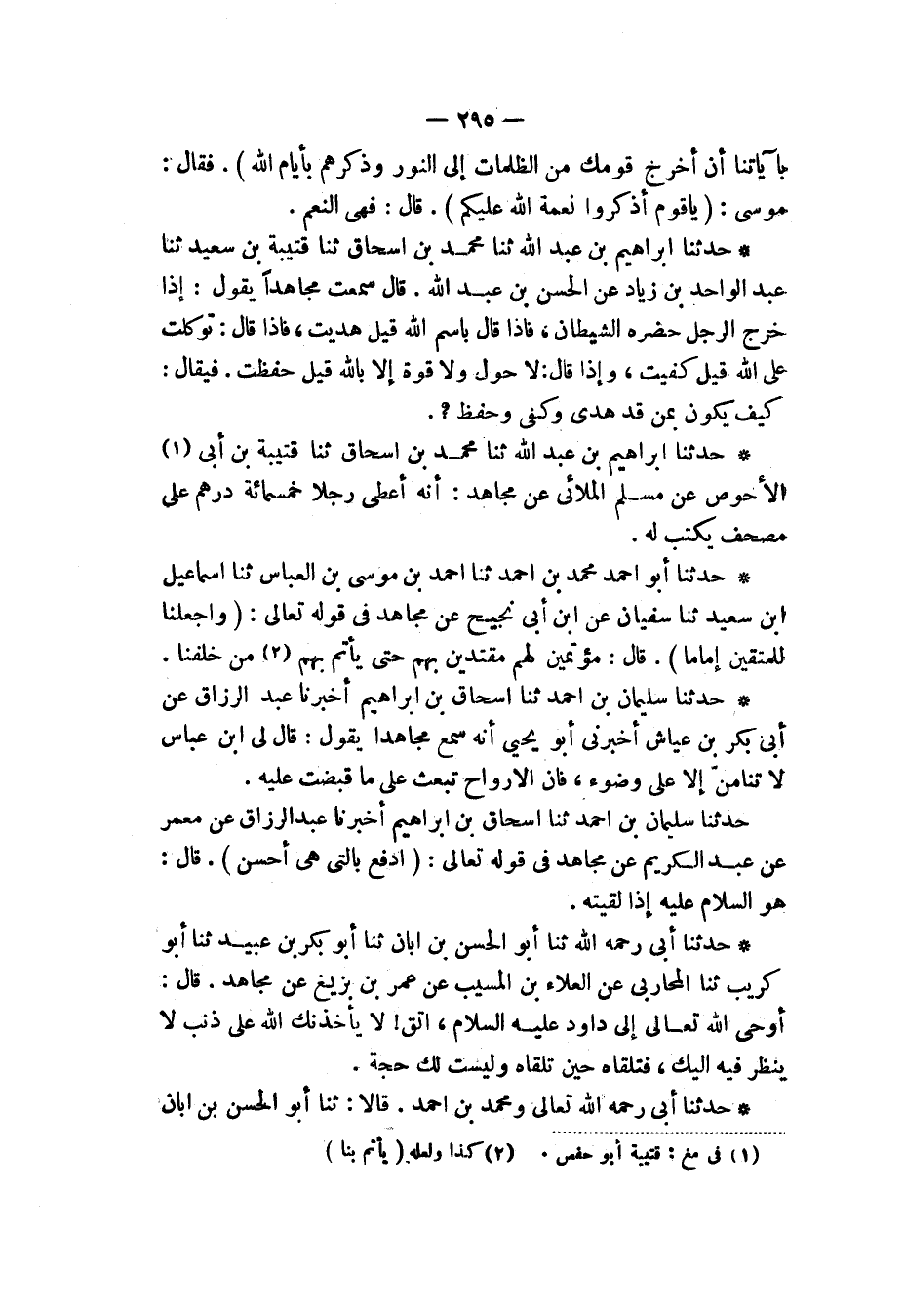 حَدَّثَنَا إِبْرَاهِيمُ بْنُ عَبْدِ اللهِ، ثنا مُحَمَّدُ بْنُ إِسْحَاقَ، ثَنَا قُتَيْبَةُ، عَنْ أَبِي الْأَحْوَصِ، عَنْ مُسْلِمٍ الْمُلَائِيُّ، عَنْ مُجَاهِدٍ: «§أَنَّهُ أَعْطَى رَجُلًا خَمْسَمِائَةِ دِرْهَمٍ عَلَى مُصْحَفٍ يُكْتَبُ لَهُ»