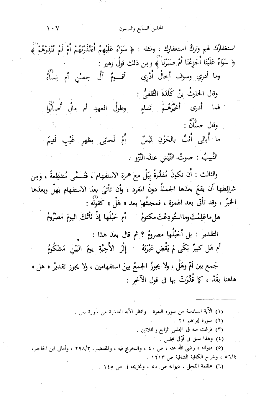 جمع بين أم وهل، ولا يجوز الجمع بين استفهامين، ولا يجوز تقدير «هل» هاهنا بقد، كما قدّرت بها فى قوا، الآخر: