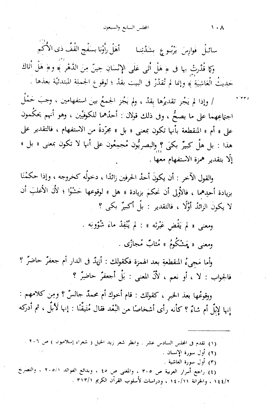 (¬4) راجع أسرار العربية ص 305، والمغنى ص 45، وبدائع الفوائد 1/ 205، والتصريح 2/ 144، والخزانة 11/ 140، ودراسات لأسلوب القرآن الكريم 1/ 313.