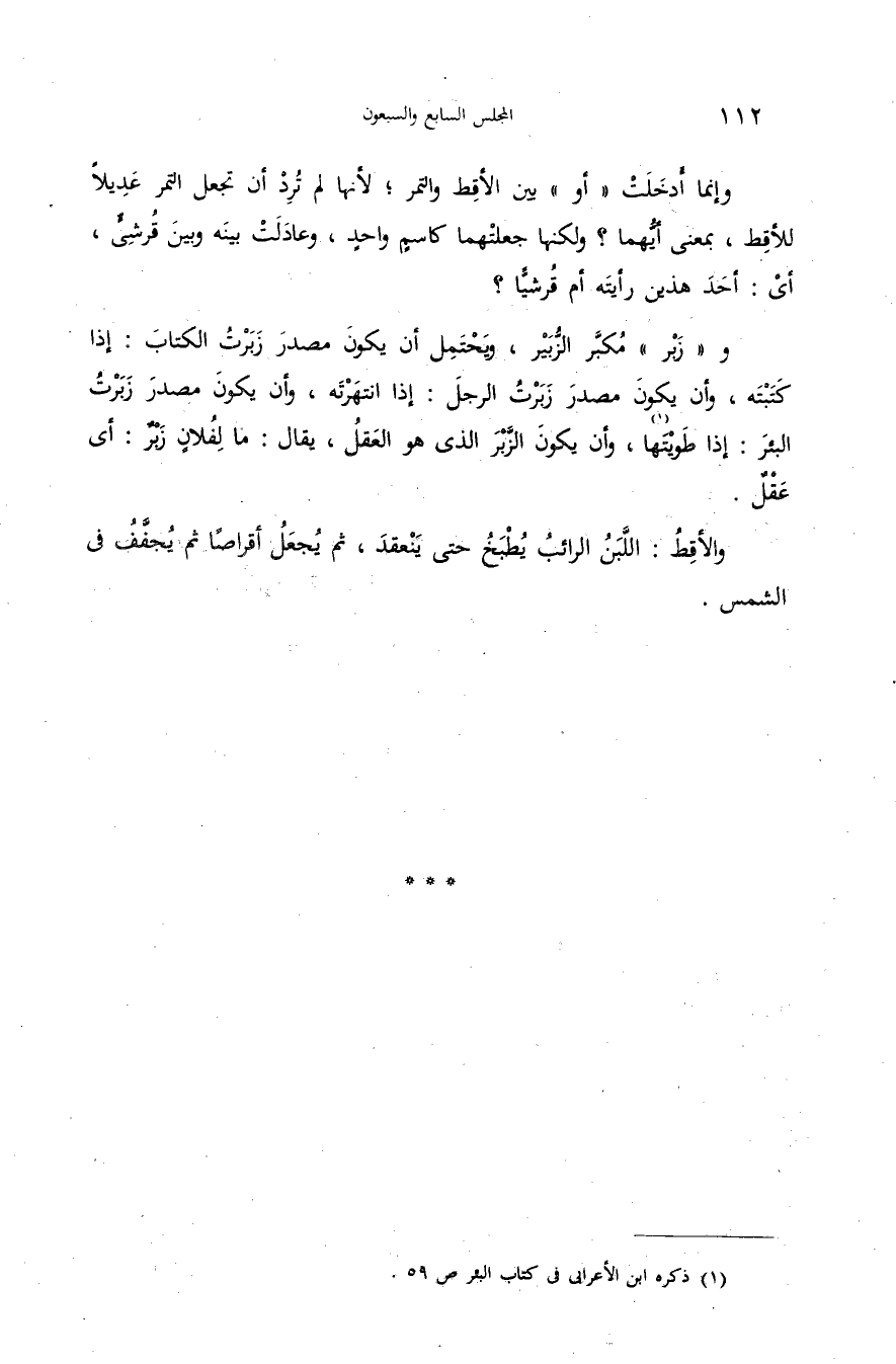 وإنما أدخلت «أو» بين الأقط والتمر؛ لأنها لم ترد أن تجعل التمر عديلا للأقط، بمعنى أيّهما؟ ولكنها جعلتهما كاسم واحد، وعادلت بينه وبين قرشىّ، أى: أحد هذين رأيته أم قرشيّا؟