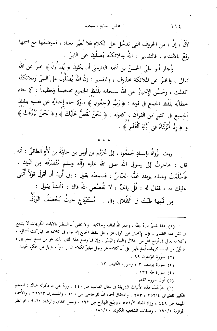 (¬6) خرّجت هذه الأبيات الشريفة فى منال الطالب ص 440، وزد على ما ذكرته هناك: المعجم الكبير للطبرانى 4/ 252،253، واشتقاق أسماء الله للزجاجى ص 231، والمستدرك 3/ 327، والأسماء المبهمة ص 449، وزاد المعاد 3/ 551، ومنح المدح ص 192، وسبل الهدى والرشاد 1/ 90، ثم انظر الموازنة 1/ 271، وطبقات الشافعية الكبرى 10/ 281.