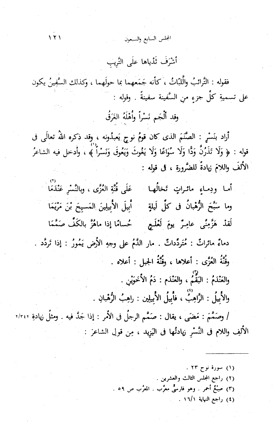 أما ودماء مائرات تخالها … على قنّة العزّى، وبالنّسر عندما (¬2)
