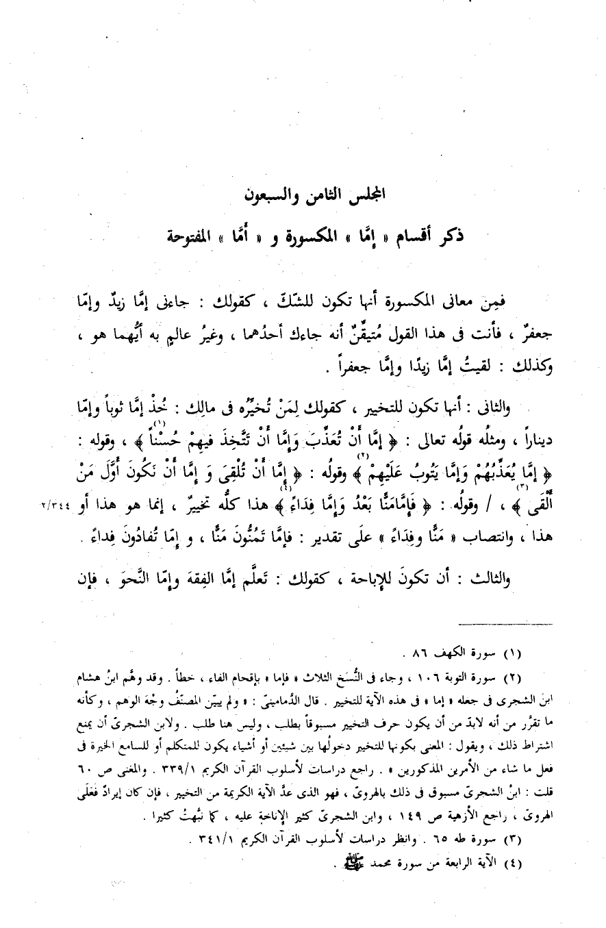 ذكر أقسام «إمّا» المكسورة و «أمّا» المفتوحة