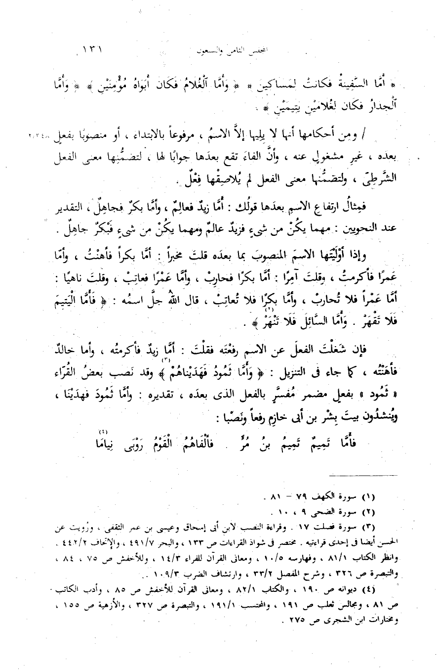 (¬3) سورة فصلت 17. وقراءة النصب لابن أبى إسحاق وعيسى بن عمر الثقفى، ورويت عن الحسن أيضا فى إحدى قراءتيه. مختصر فى شواذ القراءات ص 133، والبحر 7/ 491، والإتحاف 2/ 442. وانظر الكتاب 1/ 81، وفهارسه 5/ 10، ومعانى القرآن للفراء 3/ 14، وللأخفش ص 75،84، والتبصرة ص 326، وشرح المفصل 2/ 33، وارتشاف الضرب 3/ 109.