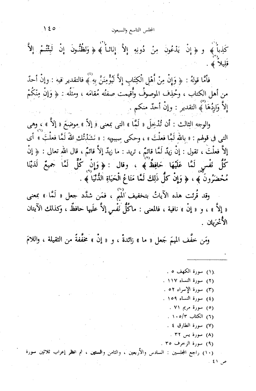 (¬10) راجع المجلسين: السادس والأربعين، والثامن والستين، ثم انظر إعراب ثلاثين سورة ص 41.