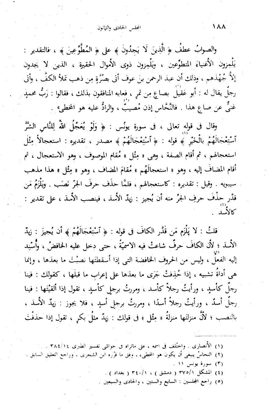 (¬2) النحاس ينبغى أن يكون هو المخطئ، وفق ما قرّره ابن الشجرى، وراجع التعليق السابق.