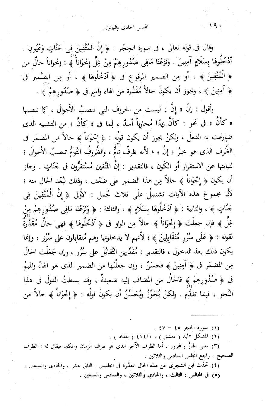 (¬4) تحدّث ابن الشجرى عن هذه الحال المقدّرة فى المجلسين: الثانى عشر، والحادى والسبعين.