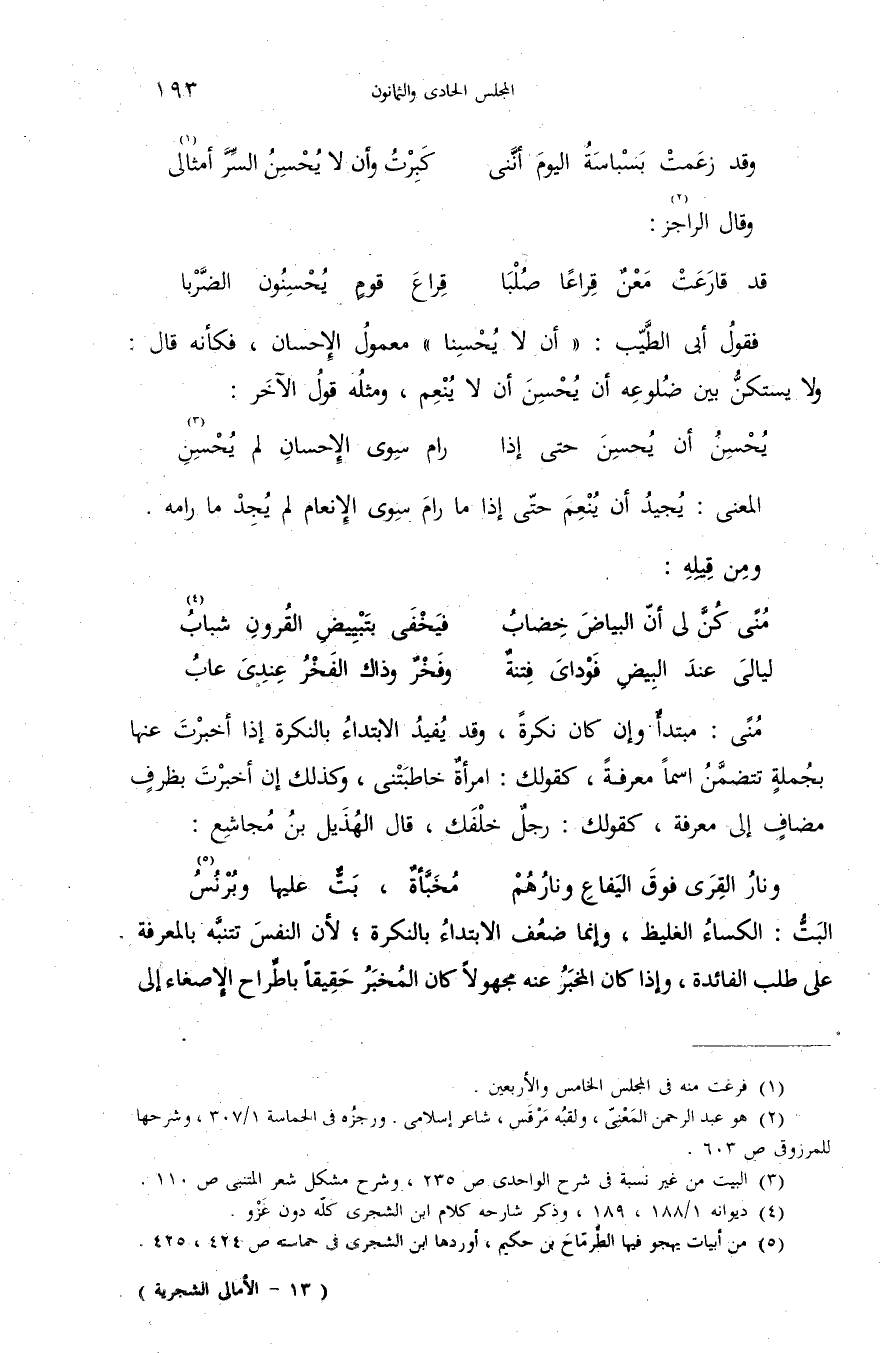 (¬4) ديوانه 1/ 188،189، وذكر شارحه كلام ابن الشجرى كلّه دون غزو.