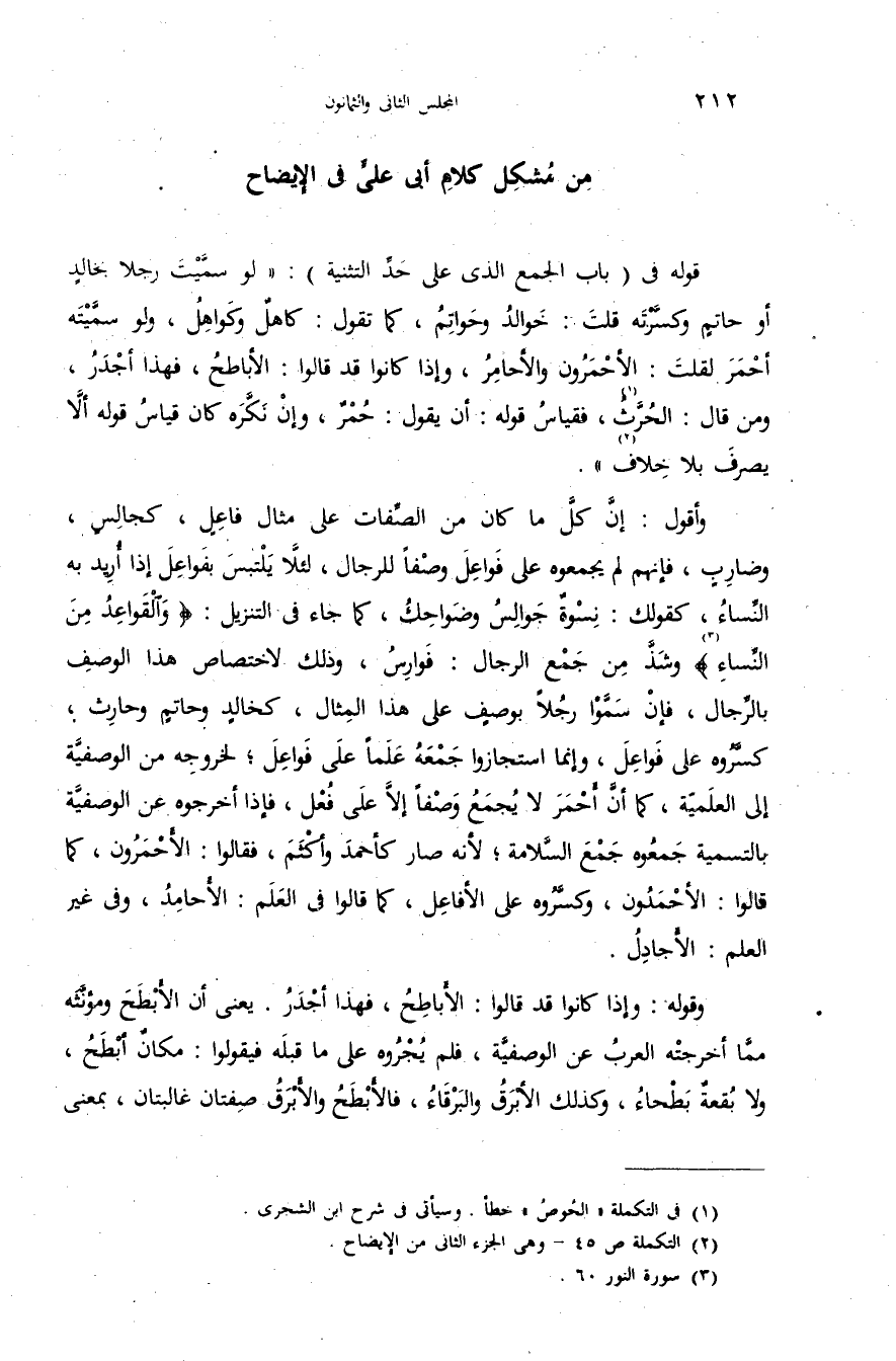 (¬2) التكملة ص 45 - وهى الجزء الثانى من الإيضاح.
