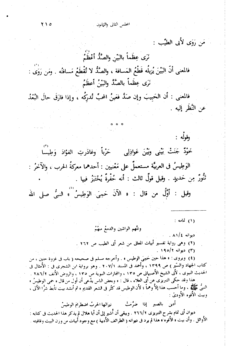 (¬2) وهى رواية تفسير أبيات المعانى من شعر أبى الطيب ص 262.
