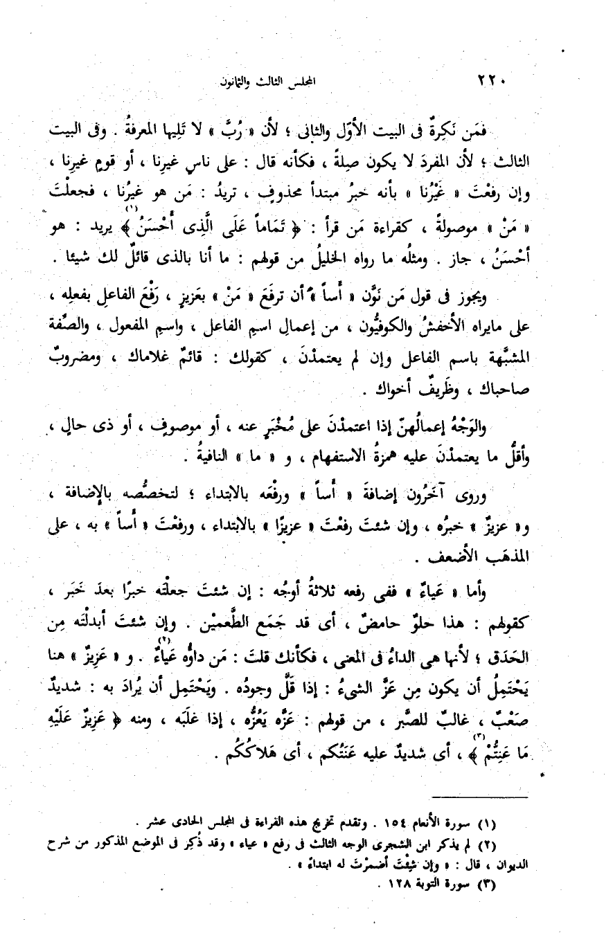 (¬1) سورة الأنعام 154. وتقدم تخريج هذه القراءة فى المجلس الحادى عشر.