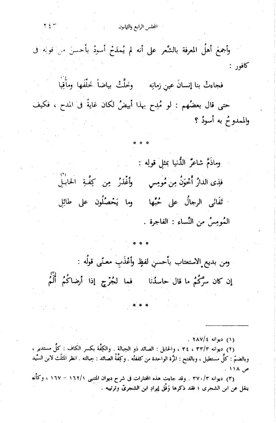 (¬3) ديوانه 3/ 370. وقد جاءت هذه المختارات فى شرح ديوان المتنبى 1/ 162 - 167، وكأنه ينقل عن ابن الشجرى؛ فقد ذكرها وفق إيراد ابن الشجرىّ وترتيبه.