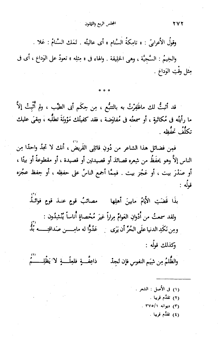 ... قد أثبتّ لك ما ظفرت به بالتتبّع، من حكم أبى الطيّب، ولم أثبت إلاّ ما رأيته فى مكاتبة، أو سمعته فى مفاوضة، فقد كفيتك مئونة تطلّبه، وبقى عليك تكلّف تحفّظه.