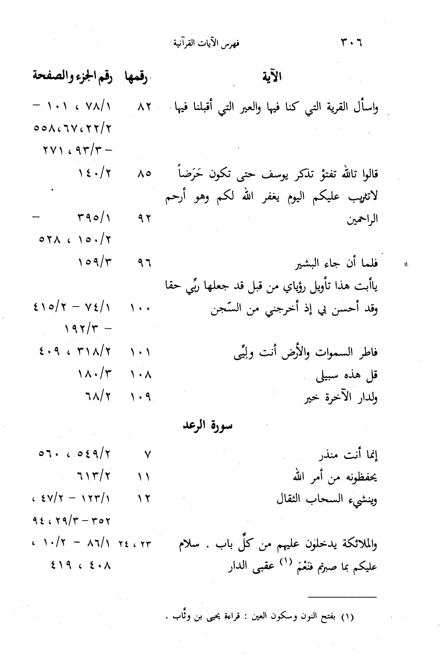 {وَسْئَلِ الْقَرْيَةَ الَّتِي كُنّا فِيها وَالْعِيرَ الَّتِي أَقْبَلْنا فِيها} \82\ 1/ 78،101 - 2/ 22،67،558 - 3/ 93،271