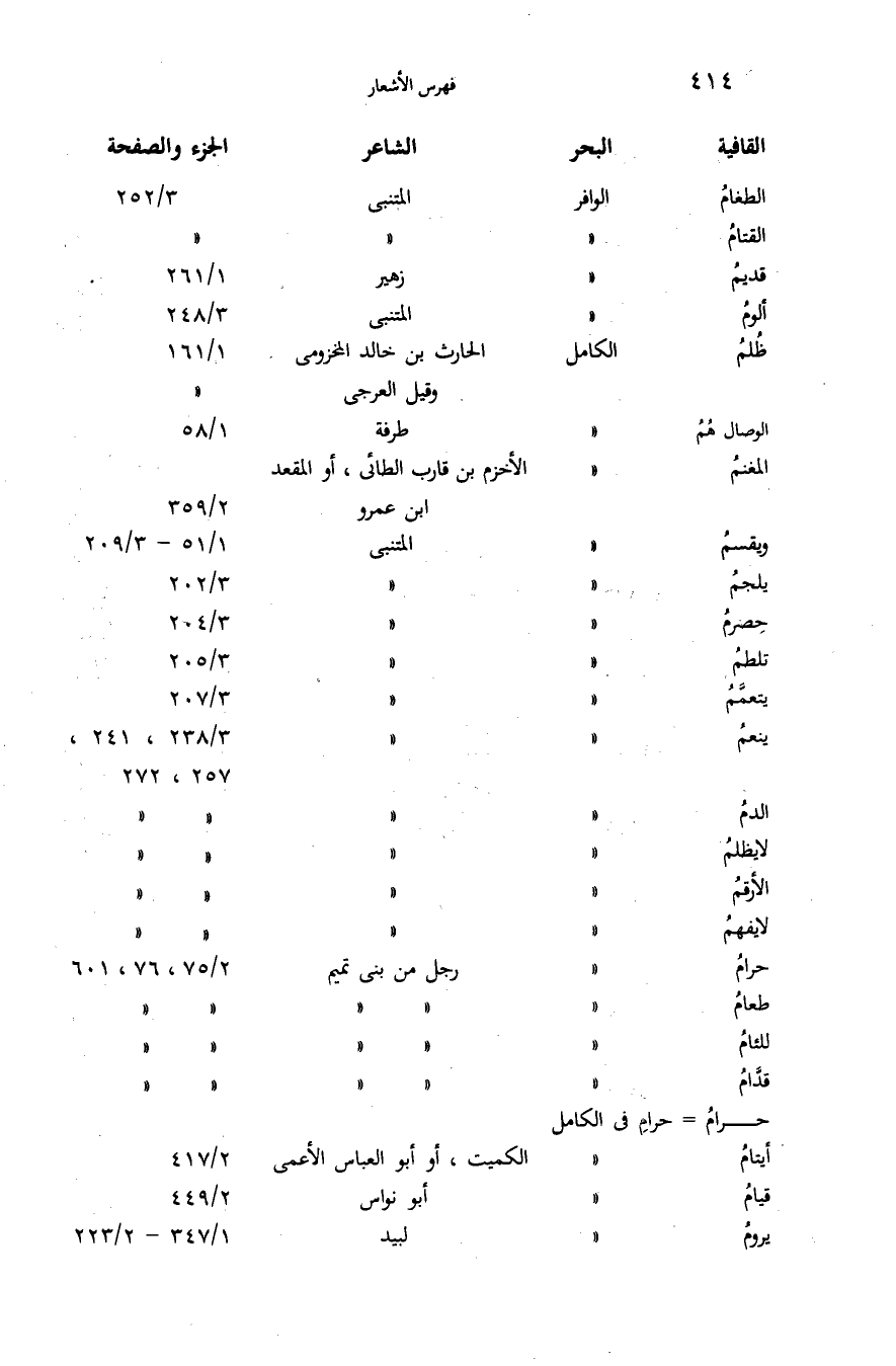 الأرقم \الكامل \المتنبى \3/ 238،241،257،272