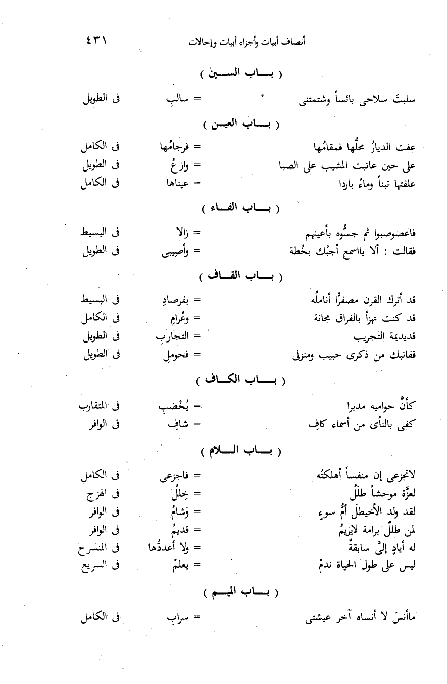 (باب الميم) ما أنس لا أنساه آخر عيشتى \-سراب \فى الكامل