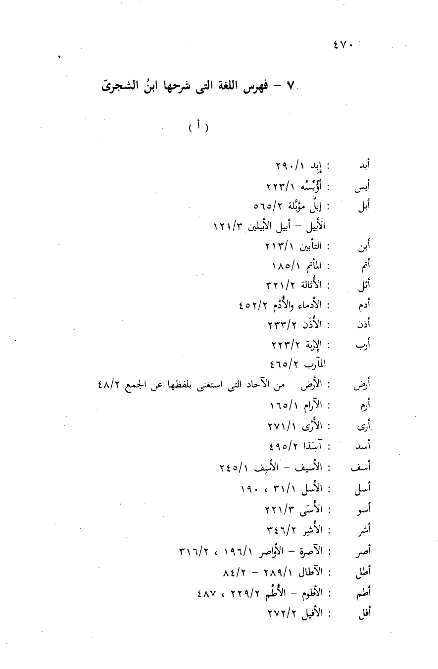 7 - فهرس اللغة التى شرحها ابن الشجرىّ
