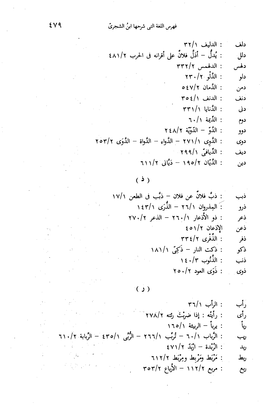 ريب: الرّباب 1/ 60 - تربّب 1/ 266 - الرّبّى 1/ 435 - الرّبابة 2/ 610