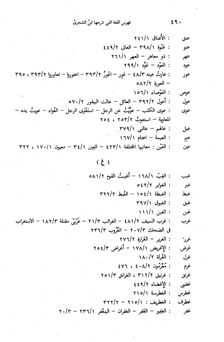 غرب: غرب السيف 2/ 481 - الغرائب 3/ 21 - غربى مقتلة 3/ 182 - الاستغراب فى الضحك 3/ 207 - الغروب 3/ 236