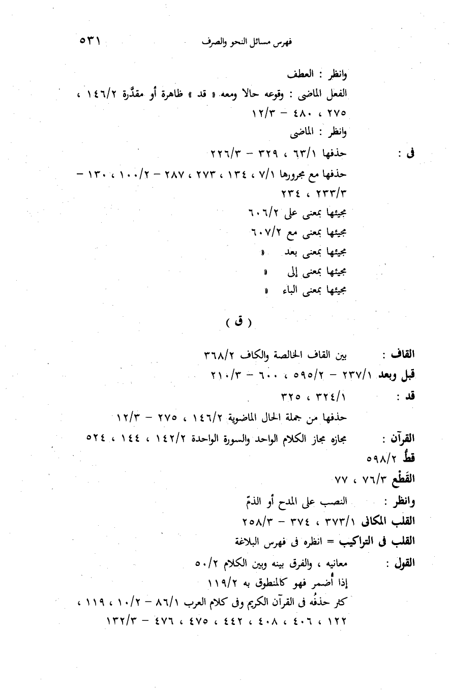 كثر حذفه فى القرآن الكريم وفى كلام العرب 1/ 86 - 2/ 10،119، 122،406،408،442،475،476 - 3/ 132