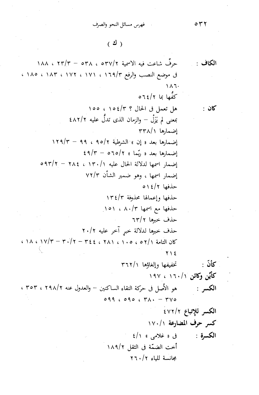 (ك) الكاف: حرف شاعت فيه الاسمية 2/ 537،538 - 3/ 23،188