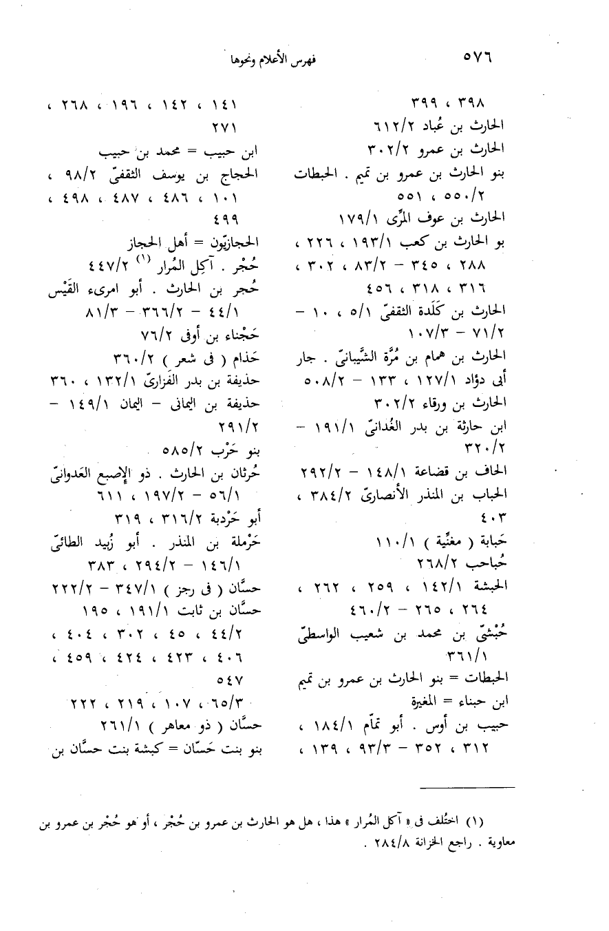 الحارث بن كلدة الثقفىّ 1/ 5،10 - 2/ 71 - 3/ 107