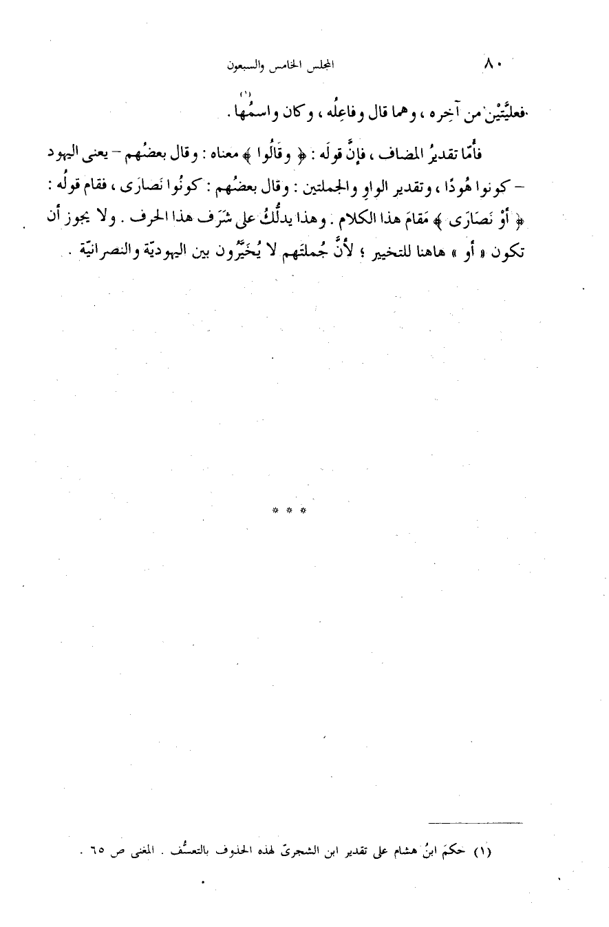 (¬1) حكم ابن هشام على تقدير ابن الشجرىّ لهذه الحذوف بالتعسّف. المغنى ص 65.