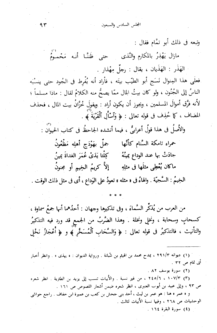 والأصل فى هذا قول أعرابىّ، فيما أنشده الجاحظ فى كتاب الحيوان (¬3):