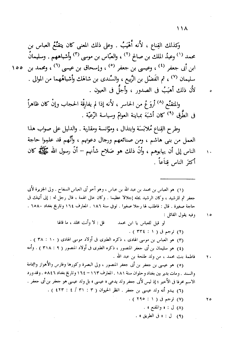 والدليل على صواب هذا العمل من بني هاشم ومن صنائعهم ورجال دعوتهم وأنهم قد علموا حاجة الناس الىان يهابوهم وان ذلك هو صلاح شانهم ان رسول الله كان اكثر الناس قناعا@