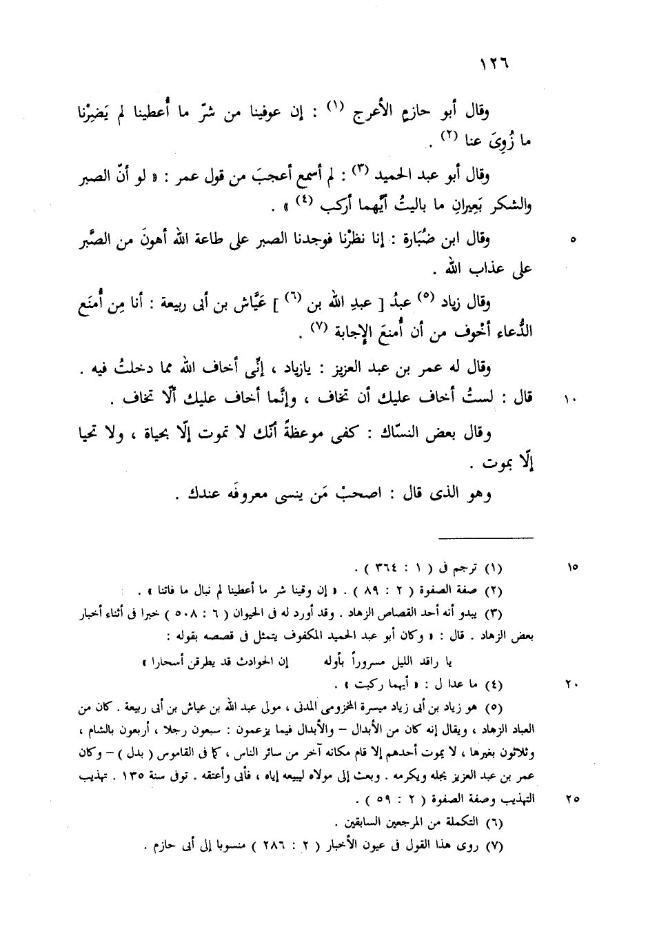 وقال أبوعبد الحميد لم اسمع اعجب من قول عمر لو ان الصبر والشكر يعيران ما باليت أيهما ركبت