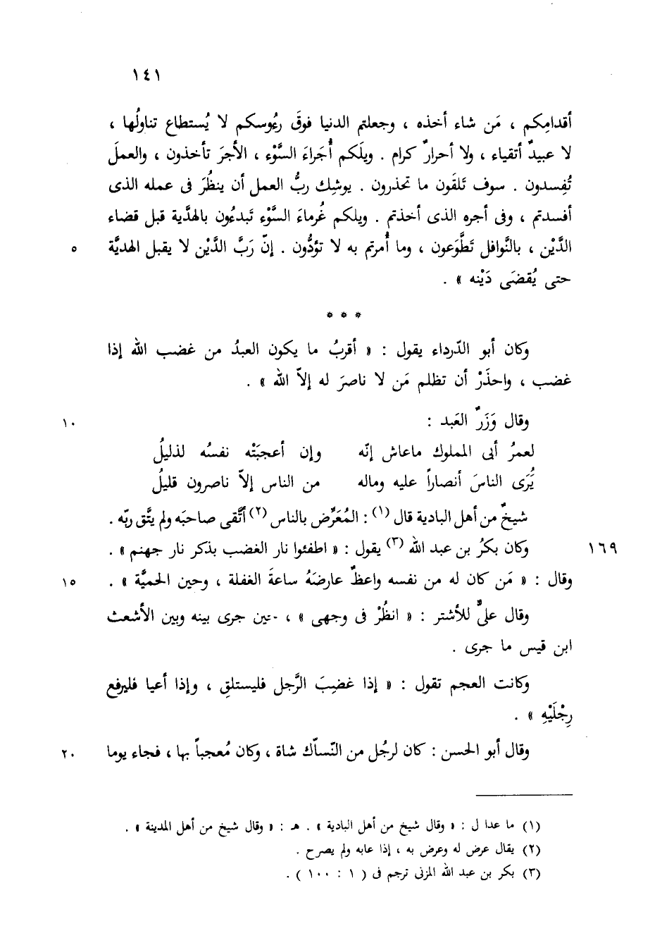وكانت العجم تقول اذا غضب الرجل فليستلق واذا أعيا فليرفع رجليه وقال ابو الحسن كان لرجل من النساك شاة وكان معجبا بها فجاء يوما@
