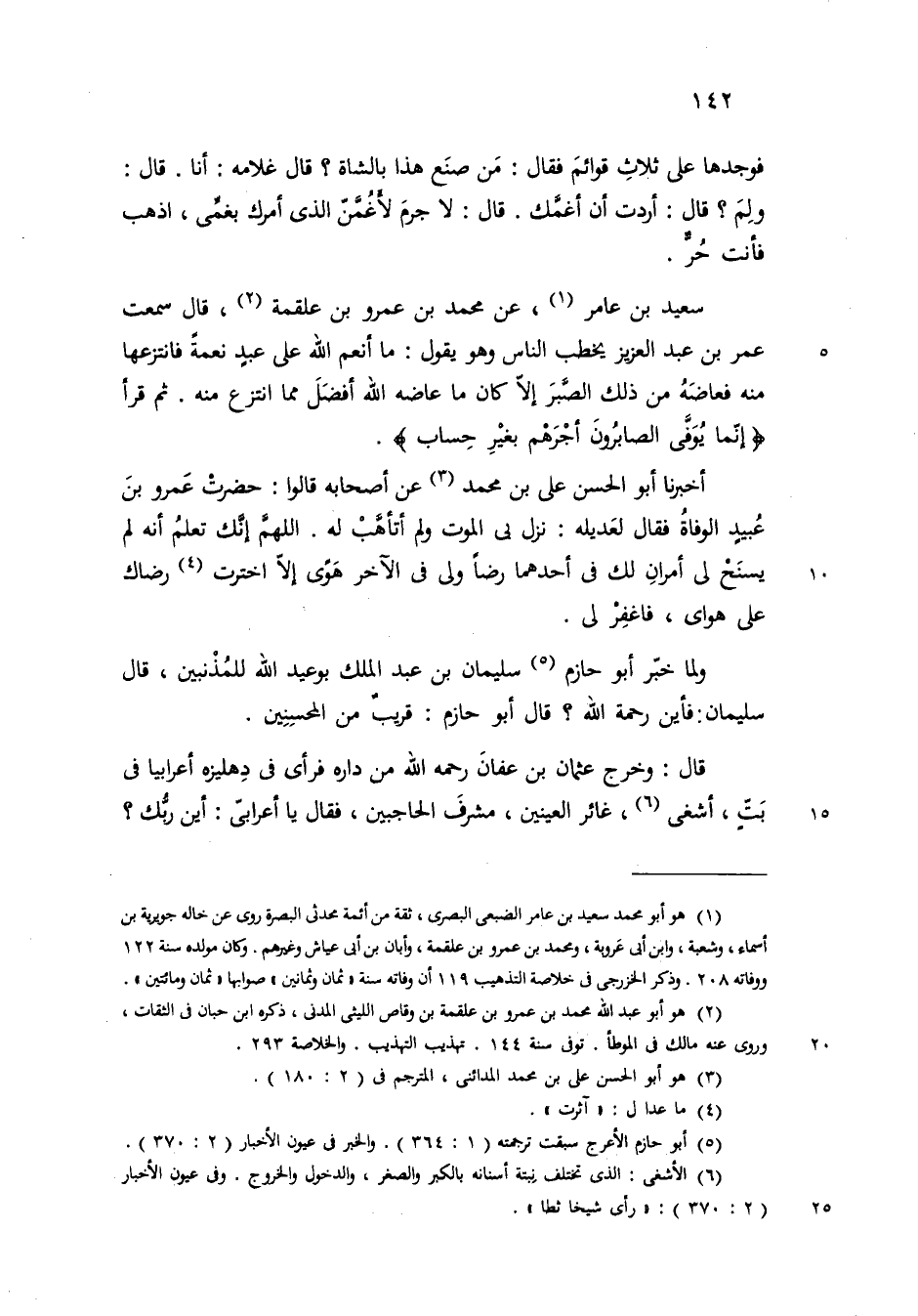 أخبرنا أبو الحسن علي بن محمد عن اصحابه قال حضرت عمرو بن عبيد الوفاة فقال لعديله نزل بي الموت ولم اتأهب له اللهم انك تعلم انه لم يسنح لي أمران لك في أحدهما رضي ولي في الآخرى هوى الا آثرت رضاك على هواي فاغفر لي
