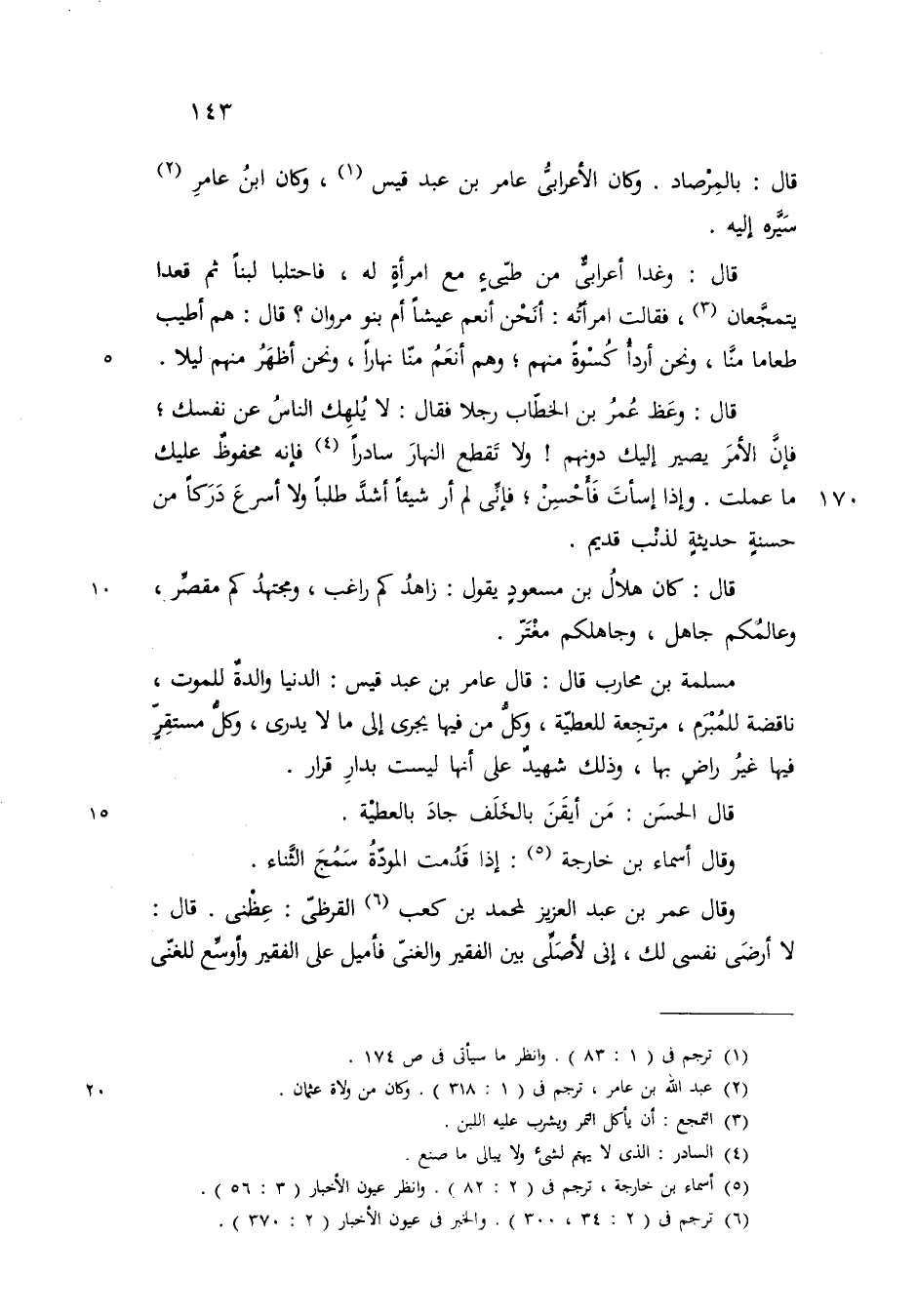 وكان الاعرابي عامر بن قيس وكان ابن عامر سيره اليه