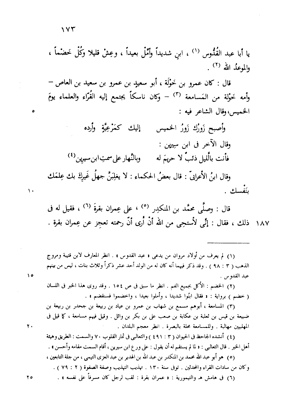 يا أبا عبد القدوس ابن شديدات وأمل بعيدا وعش قليلا وكل خضما والموعد الله