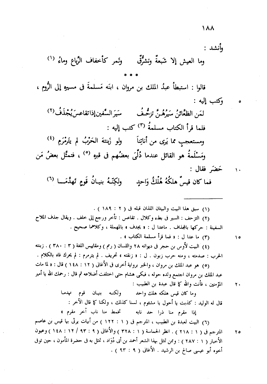 ومسلمة هوالقائل عند ما دلى بعضهم في قبره فتمثل بعض من حضر فقال ( وما كان قيس هلكه هلك واحد ... ولكنه بنيان قوم تهدما )@