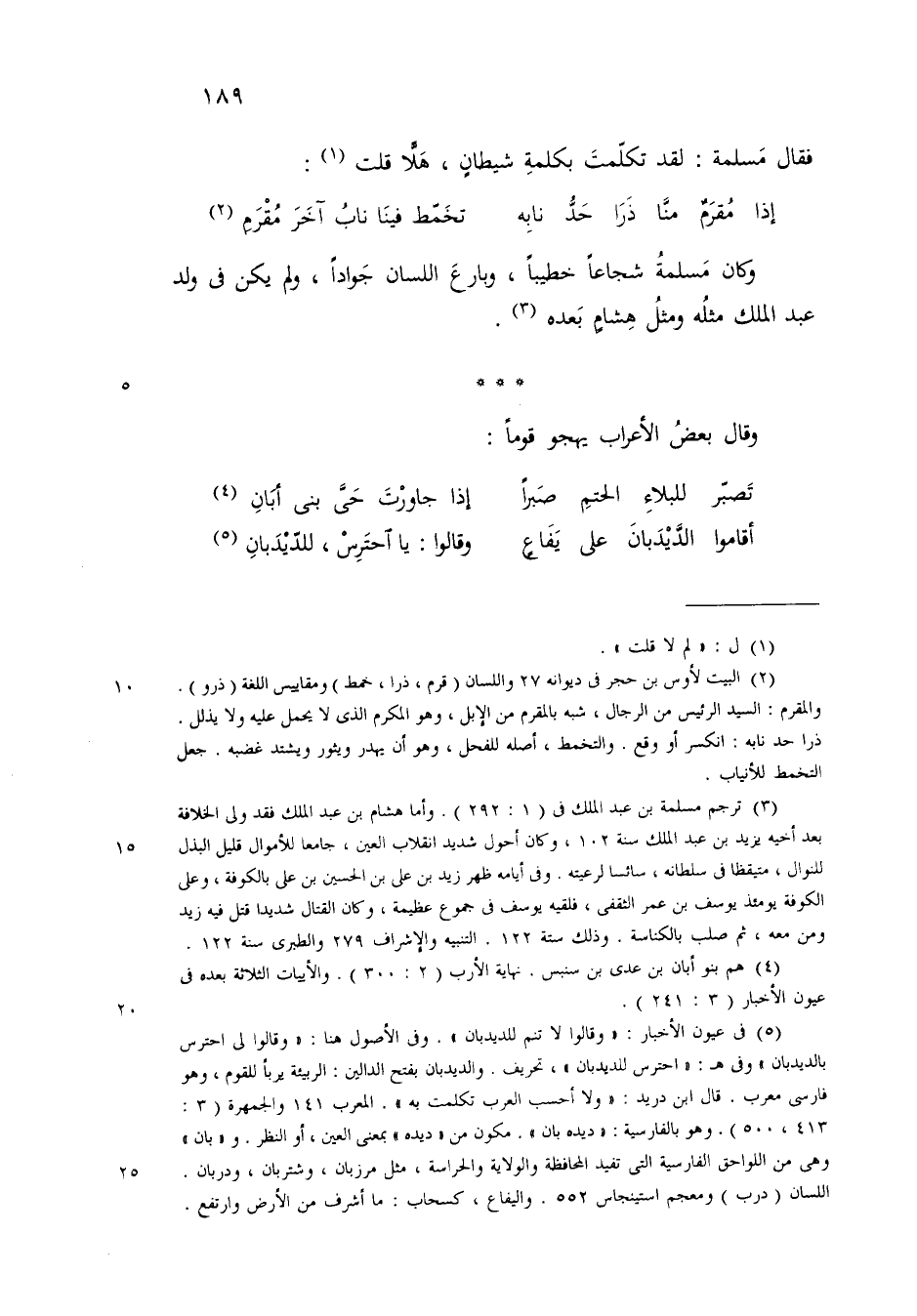 فقال مسلمة لقد تكلمت بكلمة شيطان هلا قلت